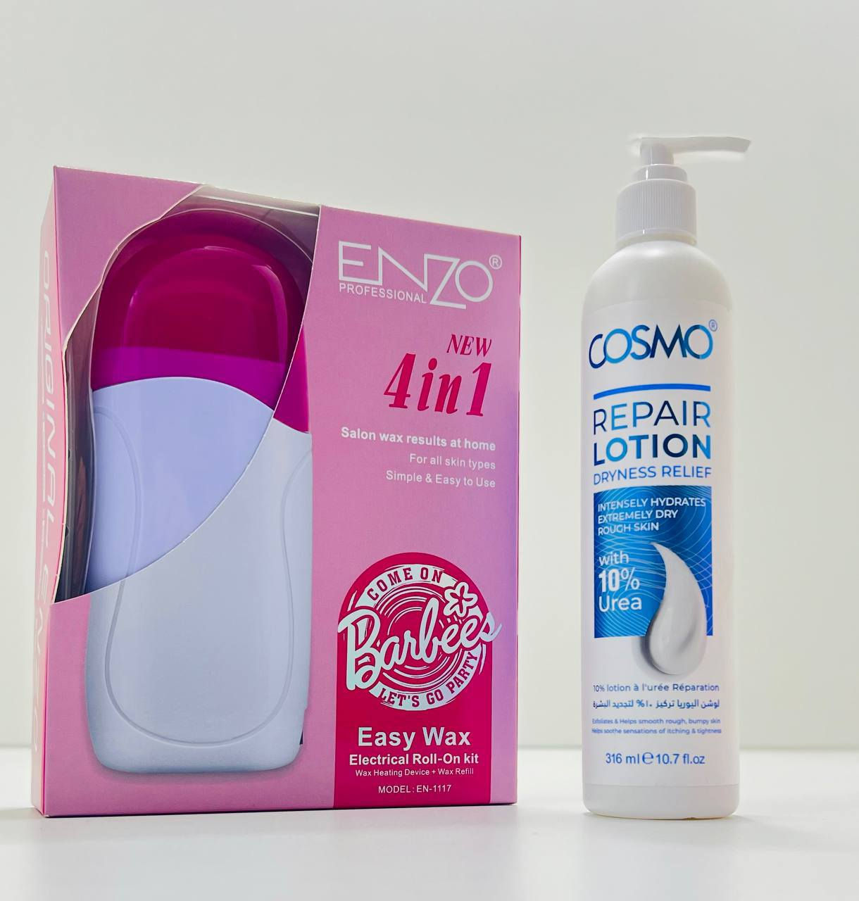 ✨ نعومة، ترطيب، وإزالة شعر باحتراف من البيت دلّلي نفسچ ببكج يوفر عليچ الوقت والجهد وينطيچ نتائج الصالونات 🌸 🤍 لوشن كوزمو ريبير (Cosmo Repair Lotion) الحل الفعّال للبشرة الجافة والخشنة جداً! ✔️ تركيبة قوية بـ 10% يوريا لتجديد الخلايا وترطيب عميق ✔️ يقشّر بلطف ويخفف الخشونة والجلد الميت ✔️ يرمم حاجز الرطوبة ويهدّي الحكة والشد ✔️ سريع الامتصاص ويترك البشرة ناعمة ومريحة من أول استخدام 💜 أحدث إصدار من جهاز رولة الشمع – ENZO بكج متكامل وسهل للاستخدام بالبيت 👌 🔹 جهاز الشمع 🔹 شاجور شمع 🔹 ورق شمع 🔹 من ماركة ENZO الأصلية **إذا كنت صاحب هذا الإعلان وتريد حذفه لأي سبب، رجاءا أرسل رسالة إلى الدعم الفني**