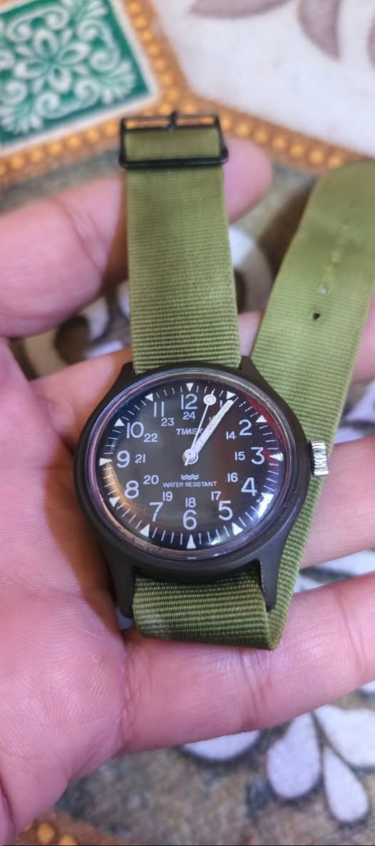 ساعه تايمكس العسكرية المستوحاة من طراز فيتنام الأصلي. قطر 36 نصب تكويك لمنوس هيكل خفيف الوزن، غالبًا من الراتنج نضام 12و24 مقاومه للماء السعر خاص يوجد توصيل **إذا كنت صاحب هذا الإعلان وتريد حذفه لأي سبب، رجاءا أرسل رسالة إلى الدعم الفني**