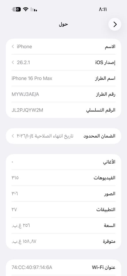 آيفون ١٦ برو ماكس • بطارية ٩١ • حي الجهاد
