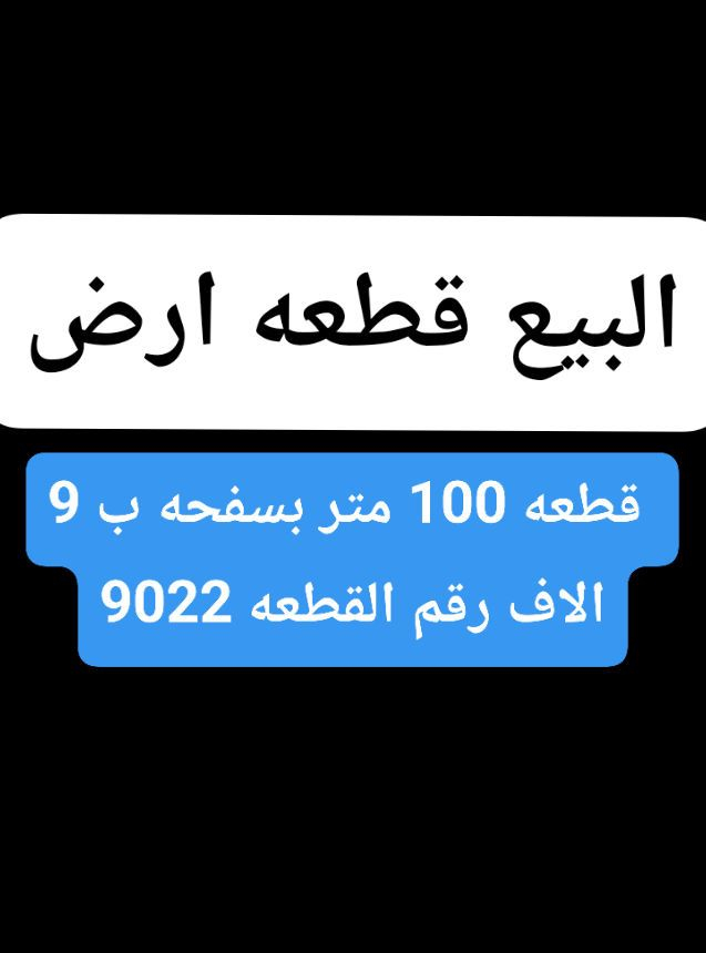 ياالله للبيع قطعه 100 متر بسفحه ب 9 الاف رقم القطعه 9022 سعره 19 وبيها مجال الشرايه **إذا كنت صاحب هذا الإعلان وتريد حذفه لأي سبب، رجاءا أرسل رسالة إلى الدعم الفني**