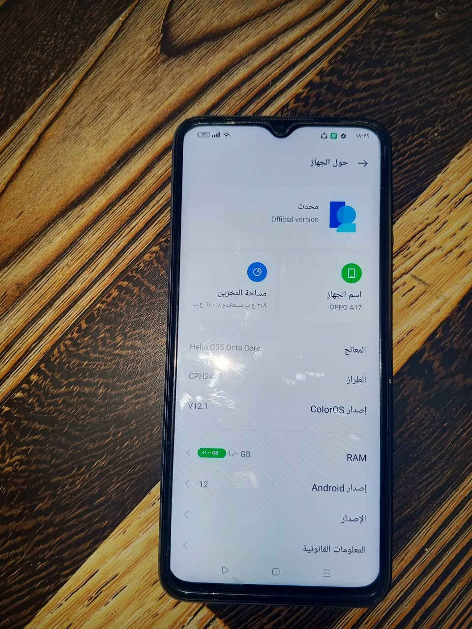 عنوان البصره للبيع هذا هاتف OPPO A17 (طراز CPH2477) يعمل بنظام Android 12 وواجهة ColorOS V12.1. يأتي بمعالج Helio G35 ثماني النواة، وذاكرة تخزين 64 جيجابايت مع ذاكرة عشوائية (RAM) 4 جيجابايت، ويتميز ببطارية 5000 مللي أمبير وكاميرا خلفية 50 ميجابكسل. أبرز مواصفات الجهاز: المعالج: ميديا تيك هيليو جي 35 (Helio G35 Octa Core). نظام التشغيل: أندرويد 12 مع واجهة ColorOS 12.1. الذاكرة والتخزين: ذاكرة تخزين داخلية 64 جيجابايت، ذاكرة وصول عشوائي (RAM) 4 جيجابايت. الكاميرا: رئيسية خلفية بدقة 50 ميجابكسل. البطارية: 5000 مللي أمبير. الشاشة: 6.56 بوصة. منفذ الشحن: Micro-USB 2.0. الجهاز يعتبر من الفئة الاقتصادية التي توفر أداءً أساسياً ومستقراً. **إذا كنت صاحب هذا الإعلان وتريد حذفه لأي سبب، رجاءا أرسل رسالة إلى الدعم الفني**