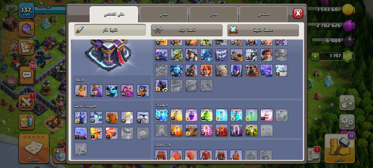 حساب كلاش • تاون ١٢ ماكس • قابل تطوير ل١٣