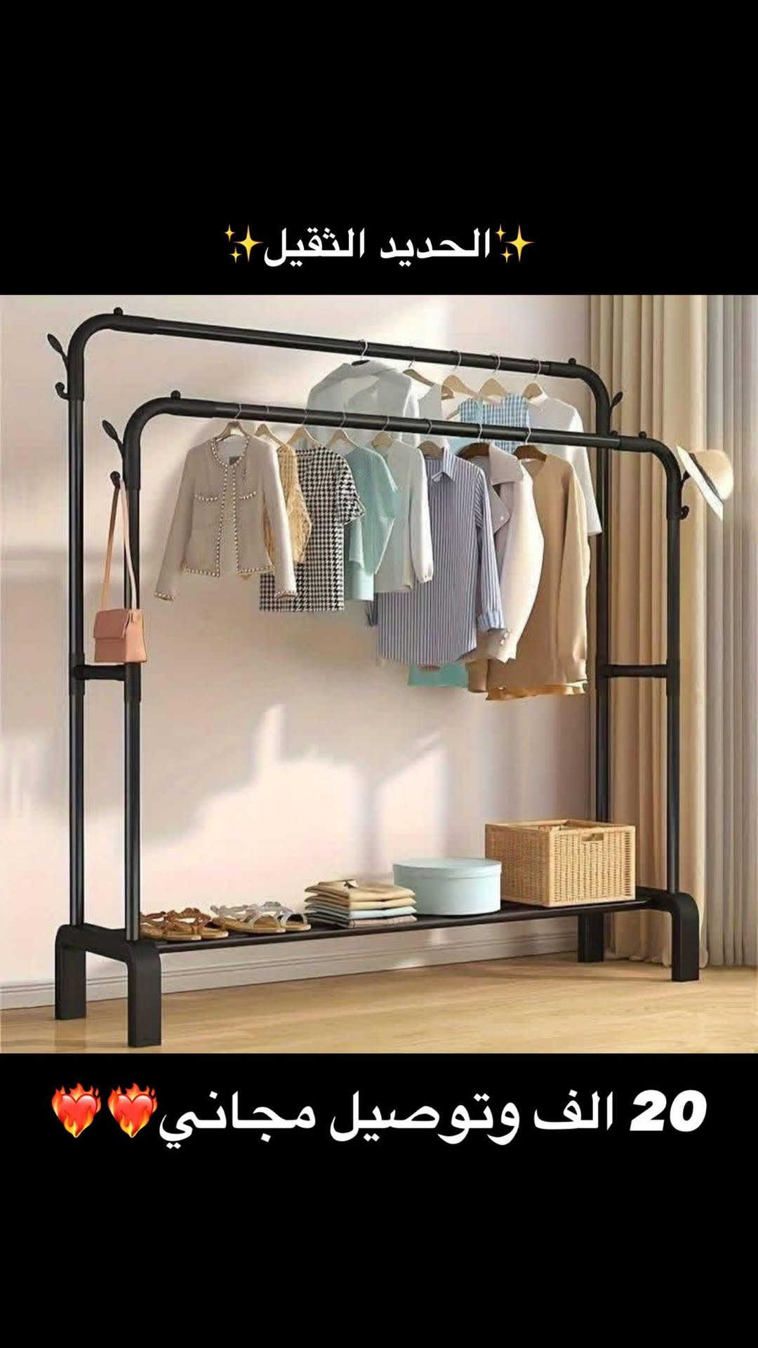 #توصيل_مجاني #تخفيضات رجع توفر ستاند الملابس الطابقين الحديد الثقيل 😍 يتحمل وزن 48kg✨ بـ20 الف وتوصيل مجاني لكل محافظات العراق❤️🔥❤️🔥. **إذا كنت صاحب هذا الإعلان وتريد حذفه لأي سبب، رجاءا أرسل رسالة إلى الدعم الفني**