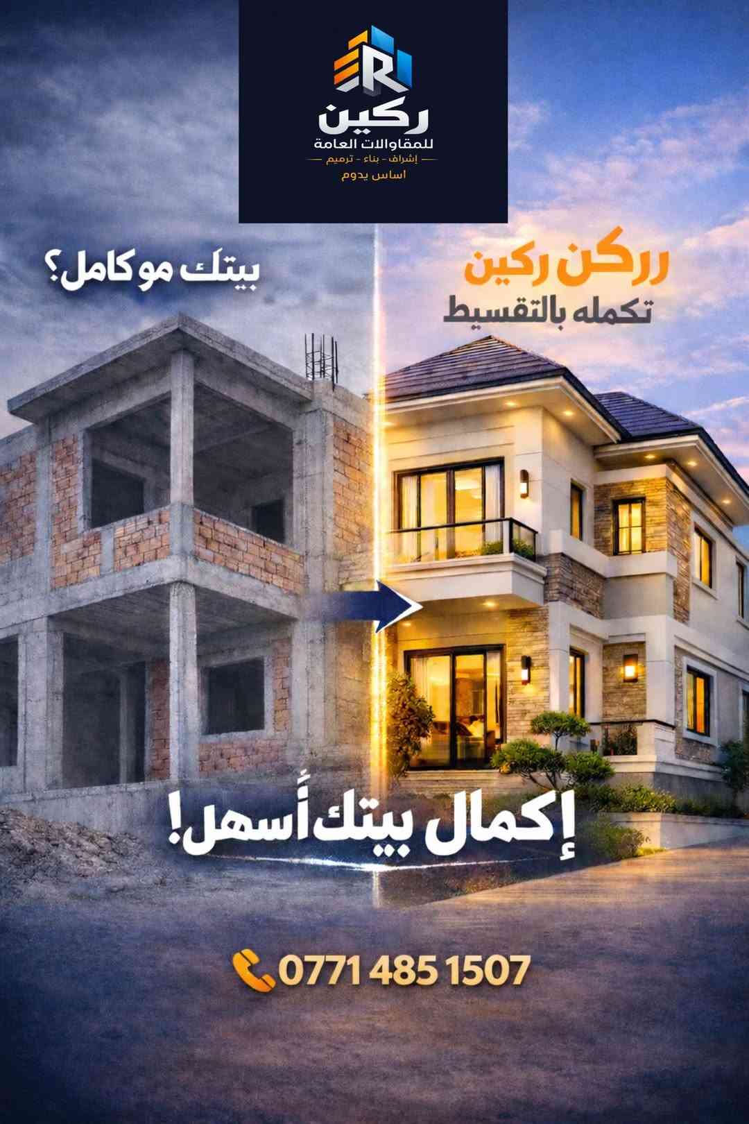 بيتك واقف عالنص؟! السقف مكمّل والباقي حلم مؤجل؟ الطابوق ظاهر… والتشطيب ينتظر؟ ليش تأجل راحتك أكثر؟ ✨ ركين للمقاولات تستلم إكمال بيتك بالتقسيط المريح وبدفعات تناسب دخلك نكمّل: ✔️ الهيكل ✔️ الطابوق ✔️ اللياسة ✔️ الكهرباء ✔️ السباكة ✔️ الصبغ والتشطيبات الكاملة إشراف هندسي • التزام بالوقت • جودة مضمونة لا تخلي بيتك يبقى مشروع متوقف خليه يصير بيت أحلامك 👌 📞 تواصل ويانه الآن ركين للمقاولات – نبني ثقتك قبل بيتك **إذا كنت صاحب هذا الإعلان وتريد حذفه لأي سبب، رجاءا أرسل رسالة إلى الدعم الفني**