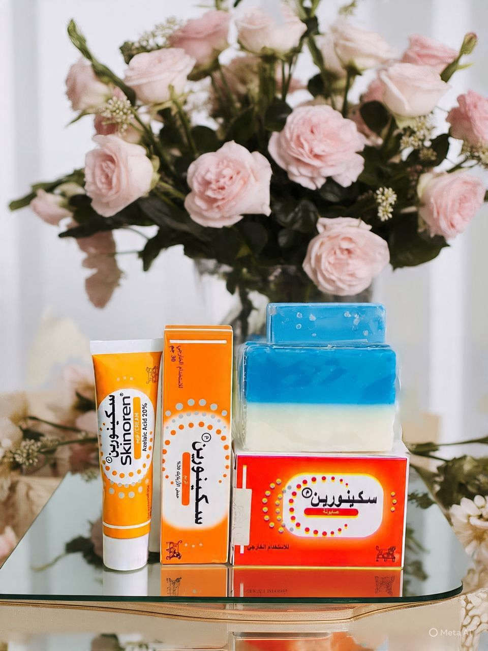 @الجميع ✨كريم +صابونة Skinoren Cream سكينورين لتفتيح البشرة وإزالة حب الشباب ! كريم سكينورين هو الحل المثالي لمن يعانون من التصبغات، حب الشباب، وآثار البقع الداكنة، بفضل تركيبته الفعالة التي تحتوي على حمض الأزيليك (Azelaic Acid) بتركيز 20%. **إذا كنت صاحب هذا الإعلان وتريد حذفه لأي سبب، رجاءا أرسل رسالة إلى الدعم الفني**