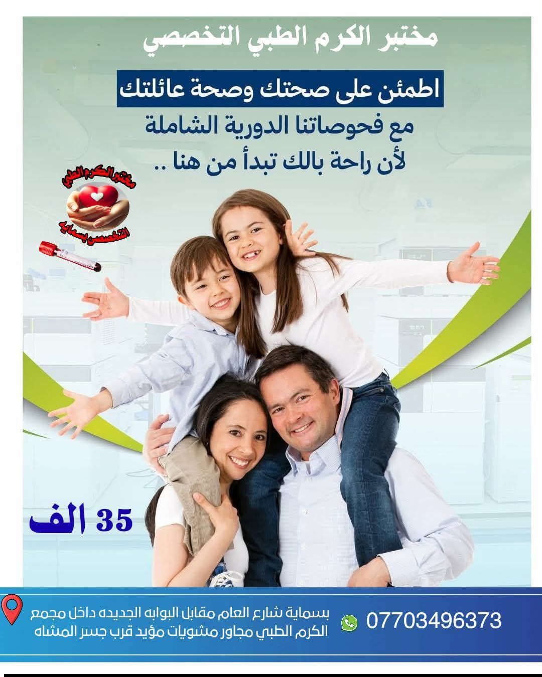 مختبر الكرم الطبي التخصصي بسماية **إذا كنت صاحب هذا الإعلان وتريد حذفه لأي سبب، رجاءا أرسل رسالة إلى الدعم الفني**