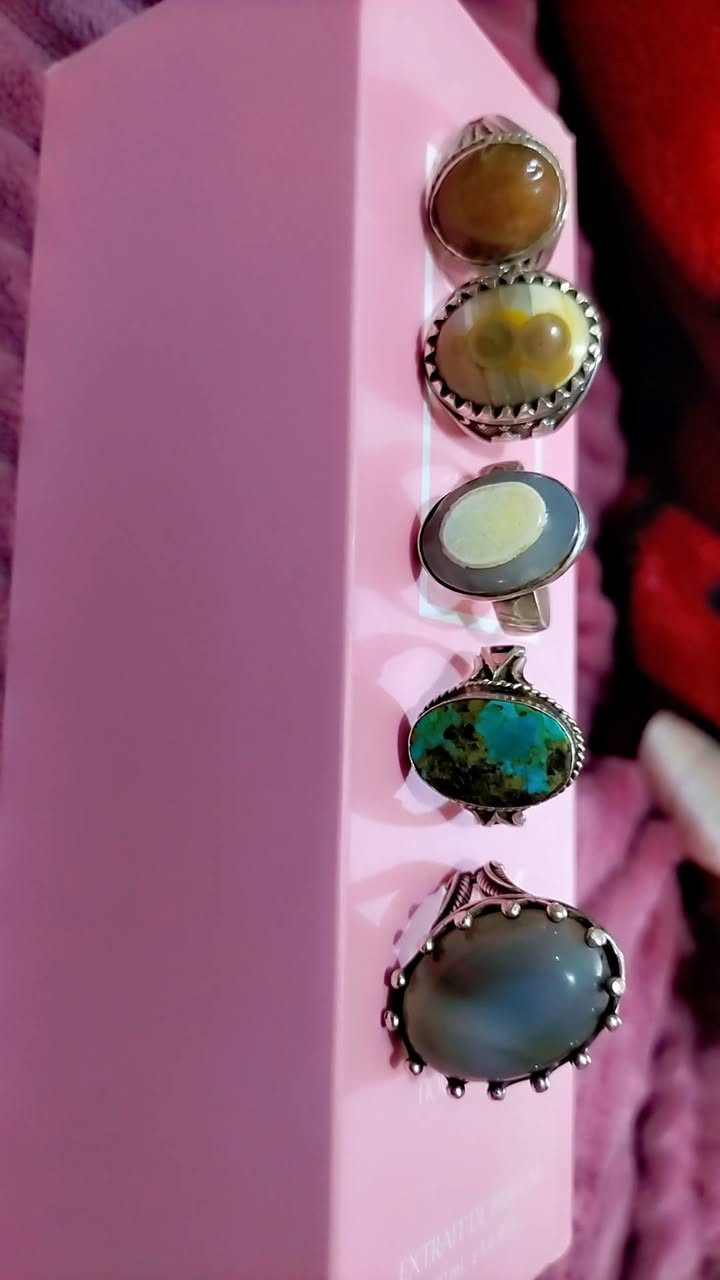 5 محابس فضه عيار 925 احجار اصليه سليماني احمر وسليماني رصاصي مطلسم وسليماني عيون صريحه وجزع يماني وفيروز نيشابوري السعر 150مع التوصيل **إذا كنت صاحب هذا الإعلان وتريد حذفه لأي سبب، رجاءا أرسل رسالة إلى الدعم الفني**