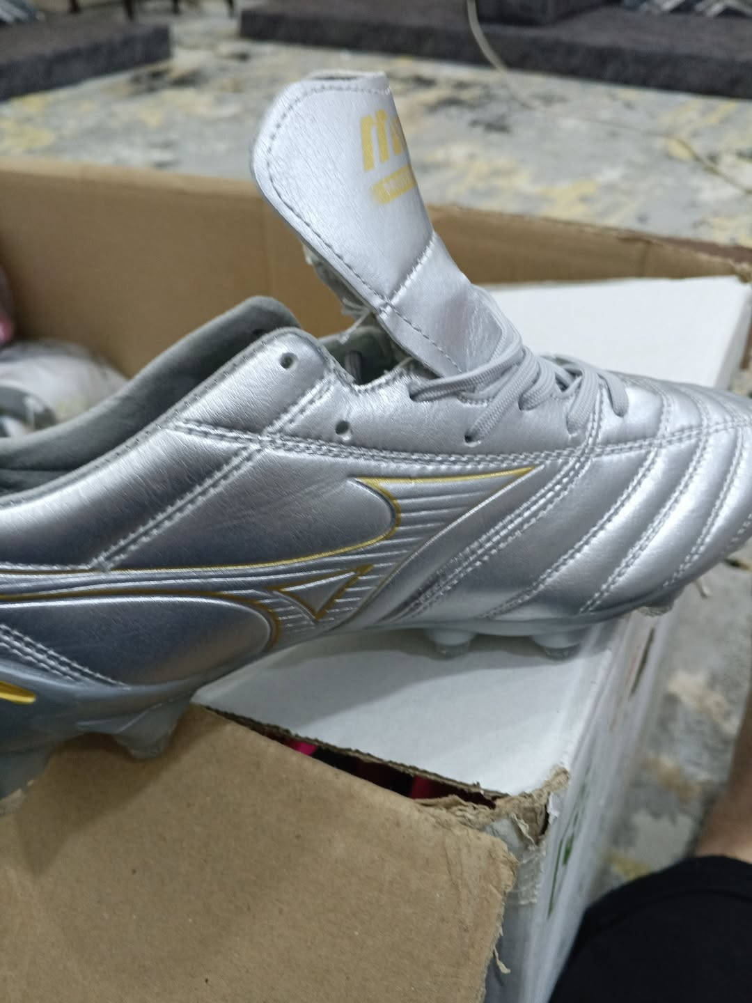 حذاء كرة قدم Mizuno Morelia Neo أصلي صناعة إندونيسيا مقاس 40 لون فضي مميز نظيف جدًا وجاهز للعب بدون كارتون 💰 السعر: 165,000 دينار (نهائي) 🚚 يوجد شحن لجميع المحافظات 📍 الموقع: الأنبار الأولوية للحسم – الجاد يراسل خاص **إذا كنت صاحب هذا الإعلان وتريد حذفه لأي سبب، رجاءا أرسل رسالة إلى الدعم الفني**