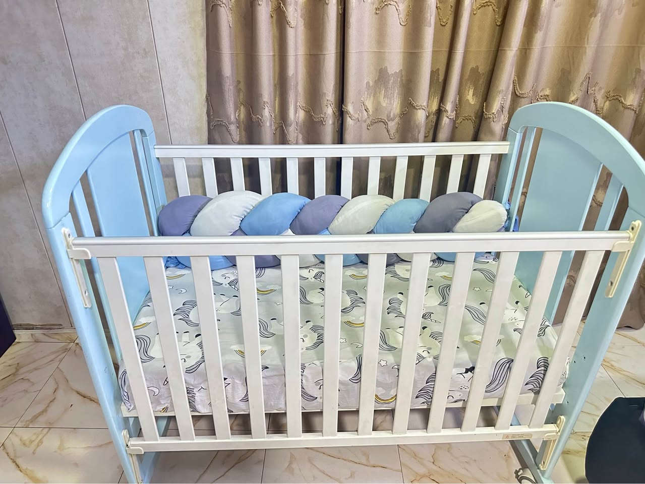 سرير اطفال لعمر ٣ سنوات ينفتح صفحه كامله من جهه سرير الام وبي تايرات من جوه يتحرك بسهوله وينقفل بسهوله واذا تشيلون التايرات يصير هزاز لونه ابيض وسمائي استعمال مده قليله ومثل مموضح بالصوره نظيف ١٠٠ نظافته اي كسر اي خدش مبي ينباع هو والفراش كامل سعره ب١٢٥ مكاني الصليخ الي يريده يتفضل خاص بغداد, العراق **إذا كنت صاحب هذا الإعلان وتريد حذفه لأي سبب، رجاءا أرسل رسالة إلى الدعم الفني**
