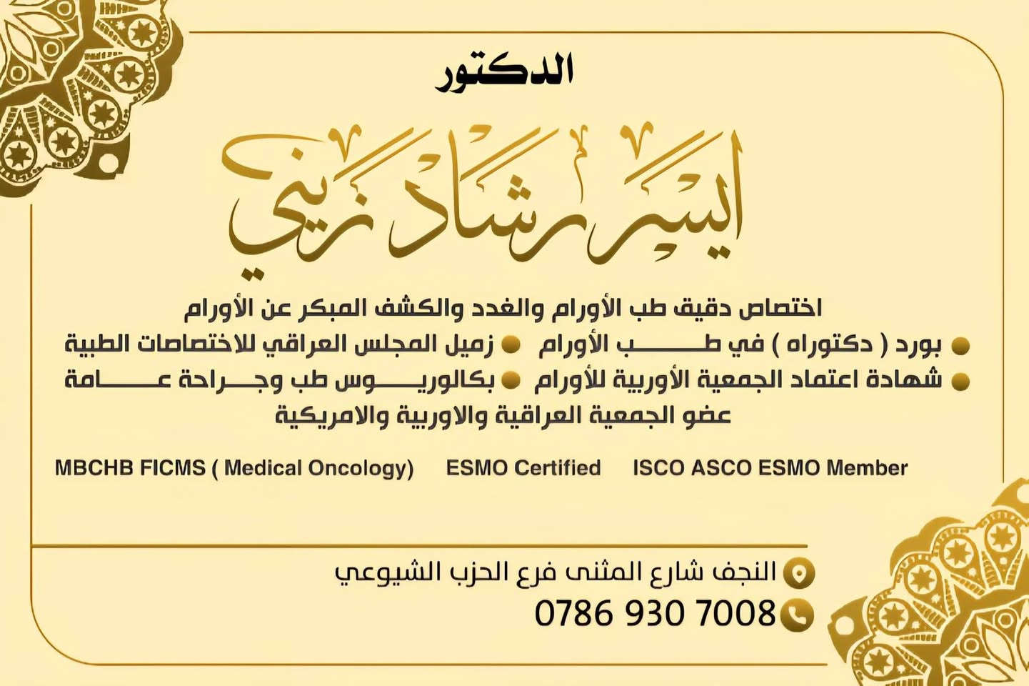 تعالوا أهلي وإخوتي، خلّي أسولف لكم هاي السالفة، وبقت يمكم إذا تريدون تشاركوها حتى أهلنا جميعاً يستفادون منها، بكيفكم بقت. يگولون: إن خليّت قلبت حقيقة. كنت دا أگلب بالفيسبوك وأتصفح، وفجأة يتصل بي رقم، فجاوبت عليه. عرفني بنفسه، گالي: أني فلان ابن فلان. كتله: أهلاً وسهلاً بيك، حياك الله، آمرني. گال: أني أريد أشارك بفعل الخير. كتله: خير إن شاء الله، شتحب تشارك؟ گال: أني معاك الدكتور أيسر زيني، اختصاص دقيق بطب الأورام والغدد. كتله: خوش حچي، موفقين. بشنو تحب تشاركنا دكتور؟ گال: أني فاتح عيادتي طول شهر رمضان مجاني، بدون كشفية وبدون أي أجور، وهاي مساعدة مني للفقراء والمتعففين، وإن شاء الله كلنا فقراء عند الله. أي شخص ما عنده، عيادتي مجانية إله طول الشهر، وهاي مبادرتي لكل شخص من كل محافظة بالعراق، وخصوصاً أهل النجف أهلي. وأضاف الدكتور: حتى إذا تحاليل أو غيرها وأكدر أساعد بيهن، هم أساعد. بعدها أني كتله: دكتور صدمتني والله، أني أريد أنزل منشور لهلنا وناسنا بالنجف، وهاي مساعدتك للناس ما تضيع عند الله. وسدّينا مكالمتنا. أحب أضيف كم كلمة: والله العظيم فعلاً إذا گالو إن خليّت قلبت حقيقة. أني أعتز بهيج ناس وأعتز بكل شخص يساعد الناس المحتاجة. الحقيقة دكتور أيسر زيني يستحق النشر والشكر، ويستحق أن يتشارك المنشور حتى يوصل للناس المتعففة والما عدهم، يروحوله للعيادة ويگولوله شفنا منشورك بالبيج مال النجف الآن. وهاي صورة الدكتور وعنوان عيادته مرفقة بالمنشور. العنوان شارع المثنى فرع الحزب الشيوعي رقم العيادة *********** #متابعة #اعلام #النجف_الآن