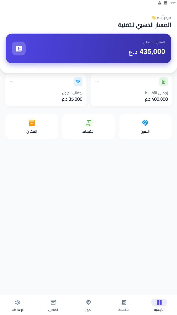 3 انظمة في تطبيق واحد وبسعر مناسب 💳 💵 السعر مذكور مع التفاصيل 👇 يرجى القراءة بعناية 🚀 تخلص من الدفاتر الورقية ونظم حساباتك وتجارتك باحترافية تامة! نقدم لكم تطبيق "دفتر الحسابات الاحترافي"، الحل الرقمي الشامل والأسهل لإدارة أعمالك، ديونك، ومخازنك بكل دقة وأمان. صُمم خصيصاً ليكون مساعدك المالي الموثوق الذي يرافقك أينما كنت. 📌 معلومات التطبيق: * 📱💻 التوافق: يعمل بكفاءة عالية على أنظمة الأندرويد (Android) والويندوز (Windows). * 🏢 المطور: المسار الذهبي للتقنية (Golden Path Tech). 🌟 أبرز المميزات التي ستنقل عملك للمستوى التالي: * 📦 نظام مخازن متكامل: إدارة عدة مستودعات في آن واحد، مع تنبيهات ذكية وفورية عند نقص المخزون لضمان استمرارية عملك. * 🤝 إدارة الموردين والمشتريات: تسجيل فواتير الشراء، دعم الخصومات، وإضافة الكميات للمخزن آلياً لتحديث الرصيد في ثوانٍ. * 💰 إدارة الديون والأقساط: متابعة دقيقة للمبالغ التي لك أو عليك، مع محرك تلقائي لحساب الأقساط وتواريخ استحقاقها وتنبيهات السداد. * 👥 سجل شامل للزبائن: ملف رقمي لكل زبون يحتوي على بياناته وتاريخ الحركات المالية، مع ميزة التواصل المباشر (واتساب/اتصال). * 📊 لوحة تحكم ذكية: إحصائيات فورية ودقيقة لإجمالي التحصيلات، الديون، والمبالغ المتبقية في شاشة واحدة مريحة. * 🖨 تقارير احترافية: إصدار كشوفات حساب ووصولات استلام بصيغة PDF أو كصور عالية الدقة، ومشاركتها بضغطة زر عبر الواتساب. * 🔒 أمان تام وخصوصية: التطبيق يعمل اوفلاين، بياناتك ملكك وحدك! تُحفظ محلياً على جهازك 100%، مع ميزة النسخ الاحتياطي (Backup) لضمان عدم ضياع حقوقك وتستطيع استخدام النسخة الاحتياطية الخاصة بتطبيق الويندوز على تطبيق الاندرويد والعكس صحيح. * 🌙 تصميم عصري: واجهة انسيابية وسريعة تدعم "الوضع الليلي" لراحة العين أثناء الاستخدام الطويل. 💎 السعر والعرض الخاص: * 🏷 السعر: 85 ألف دينار فقط! (تفعيل دائمي ولمرة واحدة فقط، لا توجد أي اشتراكات شهرية أو سنوية مخفية، جميع التحديثات مجاناً). * 🎁 جربه الآن مجاناً: نقدم لك نسخة تجريبية لمدة 3 أيام بكامل المميزات، لتتأكد بنفسك من جودة التطبيق ومدى فائدته لعملك قبل الشراء. 📥 لتحميل التطبيق والبدء فوراً قم بزيارة الموقع الخاص بنا وتحميل نسختك المفضلة: الرابط في التعليقات ♥️ ♥️ بعد التثبيت دزلي الرقم التعريفي حتى ادزلك كود التفعيل التجريبي 📞 للتواصل والاستفسار: عبر رسائل الصفحة. المسار الذهبي للتقنية – شريكك نحو التحول الرقمي الشامل⚙️✨ ملاحظة: بعد تثبيت التطبيق ارسل لنا الرقم التعريفي ليتم ارسال كود التجربة لك 🌹 **إذا كنت صاحب هذا الإعلان وتريد حذفه لأي سبب، رجاءا أرسل رسالة إلى الدعم الفني**