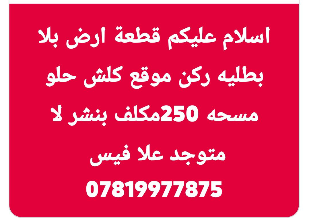 السلام عليكم قطعة ارض للبيع بطنية بستلاف ركن 250متر سعرهة 50وبيهة مجال ***********غير متواجد علا انترنيت