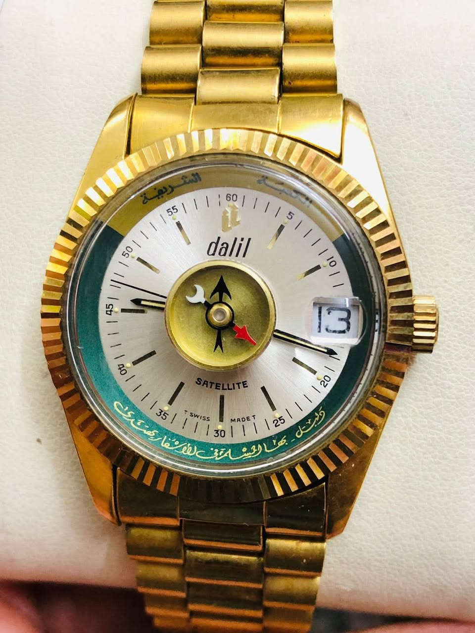 ساعة دليل المسلم ( DALIL) اوتماتيك سويسري اصلي انتاج الثمانينات تغليف ذهب بوصله لاتجاه القبلة القطر ٣٧،٥ ماكنه 21 حجر لوك غير مستعملة للاتصال ***********