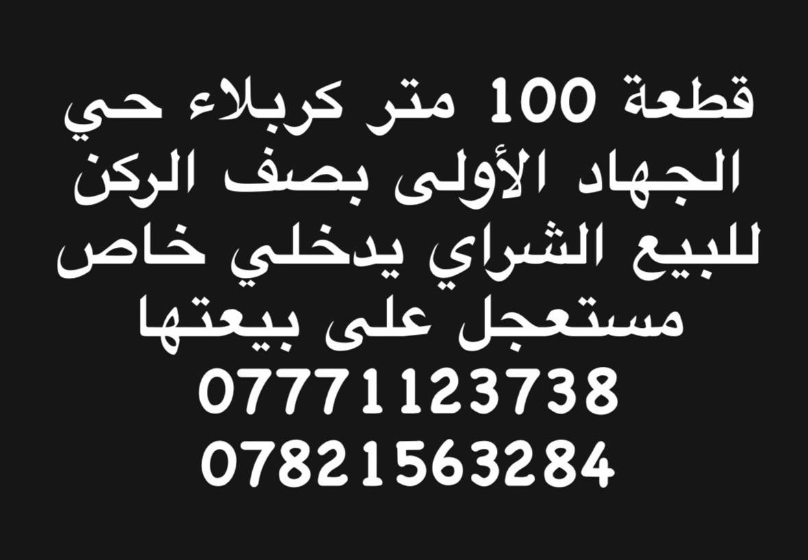 قطعة 100 متر كربلاء حي الجهاد الأولى بصف الركن للبيع الشراي يدخلي خاص مستعجل على بيعتها *********** ***********