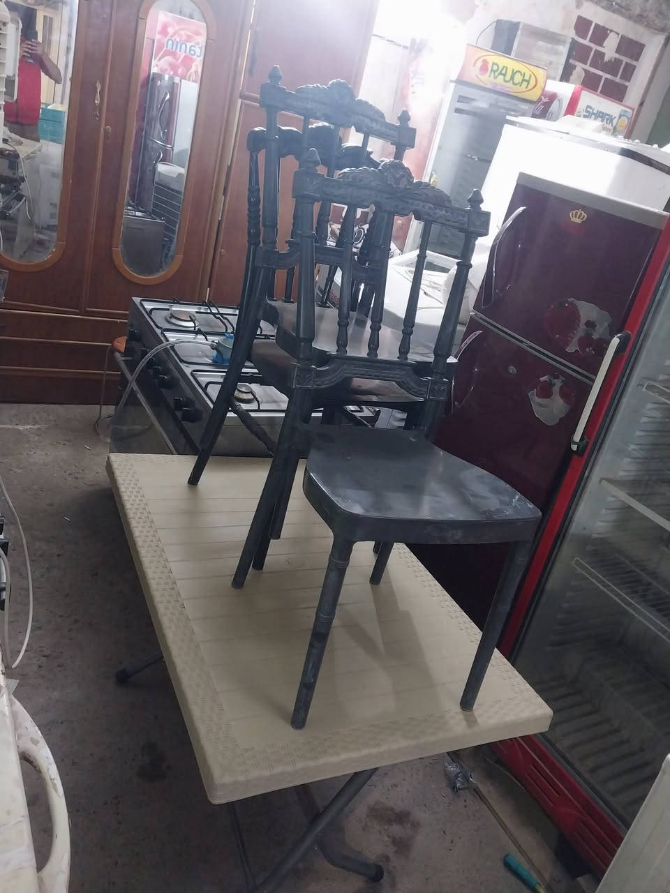 السلام عليكم من رخصة الادمن كاونتر ٣ قطع ارضيه مترين ونص وملحق مترين ونص سنك متر ونص سعره ٢٦٠ ميز طعام مع ٤ كراسي سعره ٤٥ مكان المسيب شارع الاول ***********