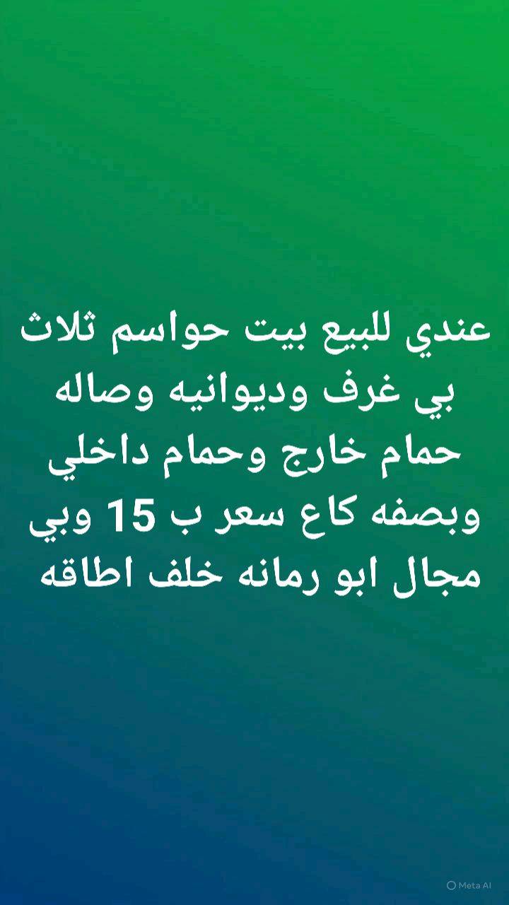 عندي للبيع بيت حواسم ثلاث بي غرف وديوانيه وصاله حمام خارج وحمام داخلي وبصفه كاع سعر 15