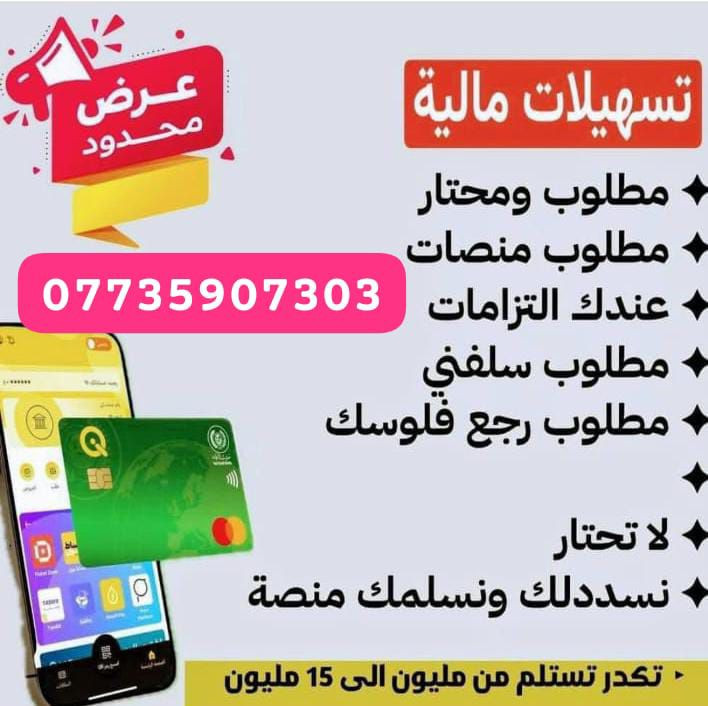 قرو,ض المصرف الرافدين 💸 تسه,يلات ما/لية فو...رية حسب الراتب 🏦 قر/ض المصرف الرافدين ✅ يشمل الفئات التالية: 👨💼 الموظفين 👴 المتقاعدين 📄 أصحاب العقود 🧾 المستفيدين 🎖️ ذوي الشهداء 🔁 يشمل أيضاً من لديهم قر,,,وض أو س...لف سابقة 📲 للاستفسار والتواصل: 📞***********