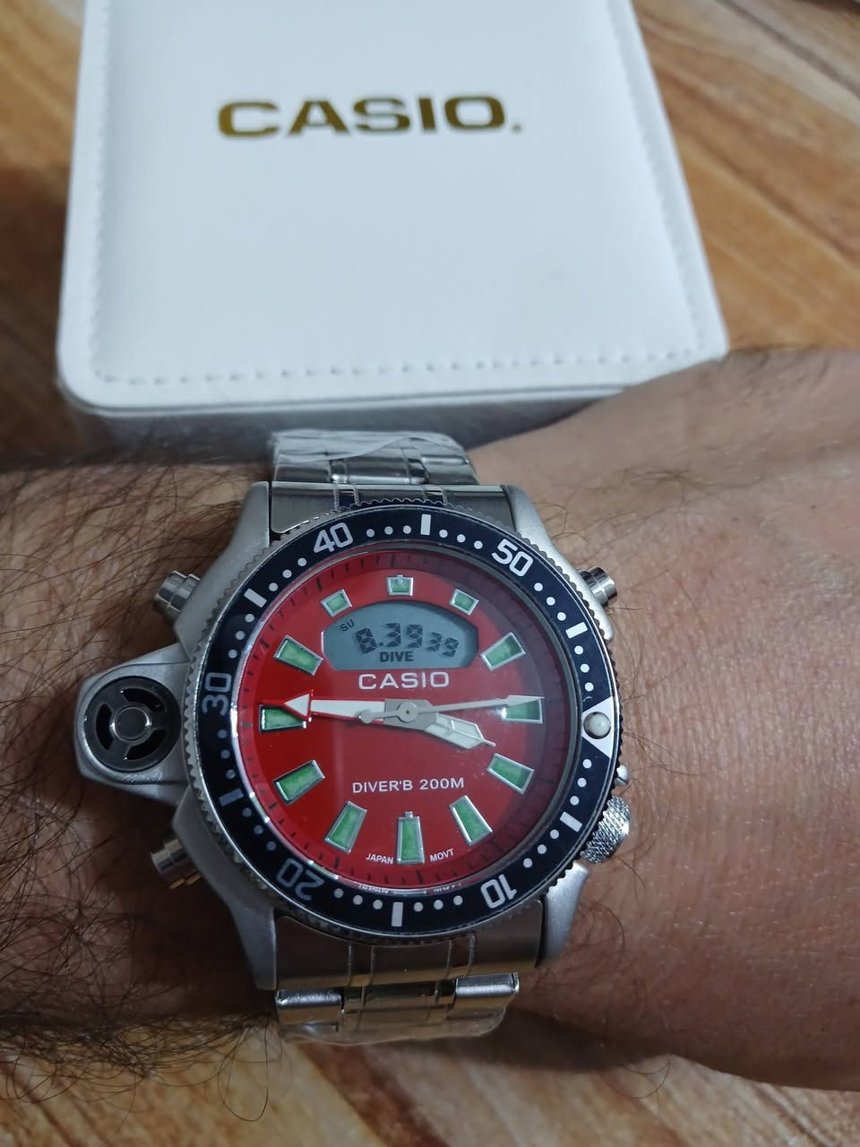 كاسيو باله دبل تايم طلعتلي بهذا الشكل قطعه نادره الرنك دوار وزن ثقيل مع علبه اصليه الميل فسفوري إضاءة في الليل بالعافيه الي ياخذها يوجود توصيل باب بيتك ٣٠ الف مع التوصيل **إذا كنت صاحب هذا الإعلان وتريد حذفه لأي سبب، رجاءا أرسل رسالة إلى الدعم الفني**
