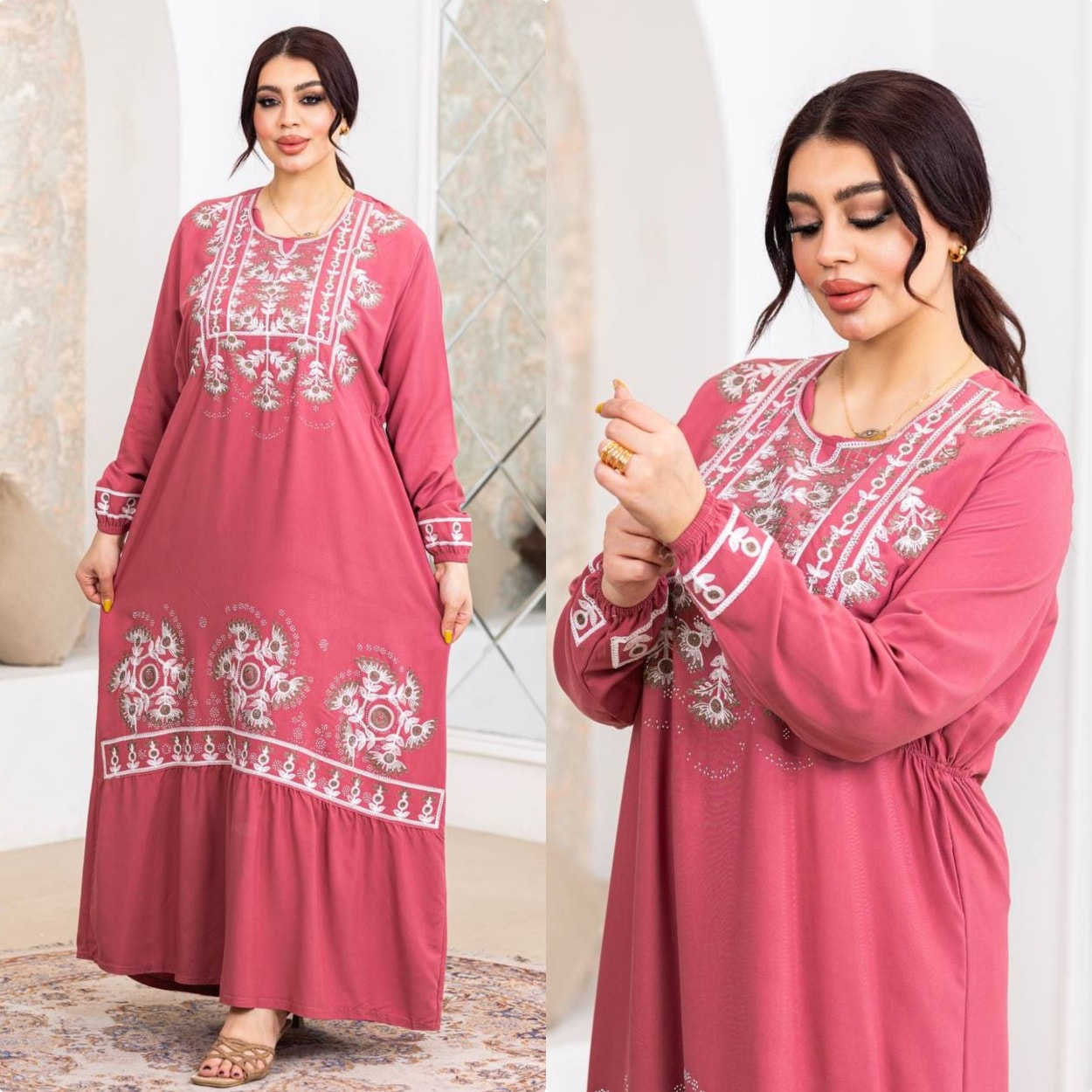 دشداشة نسائية • تطريز ستراس • قطن مراسي مصري