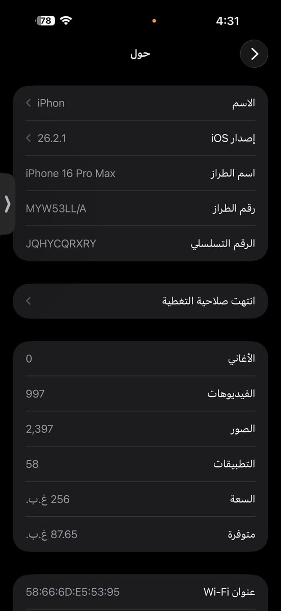 آيفون ١٦ برو ماكس • فول نظافة • شرق اوسط