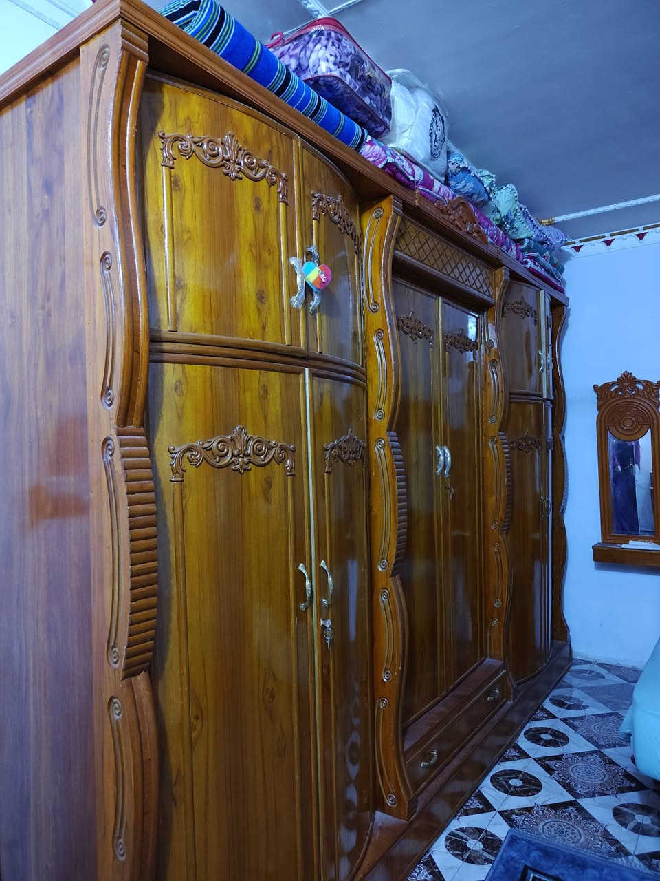 غرفة نوم خشب عراقي • نضافة ٨٠٪ • يحتاج قفال وصبغ
