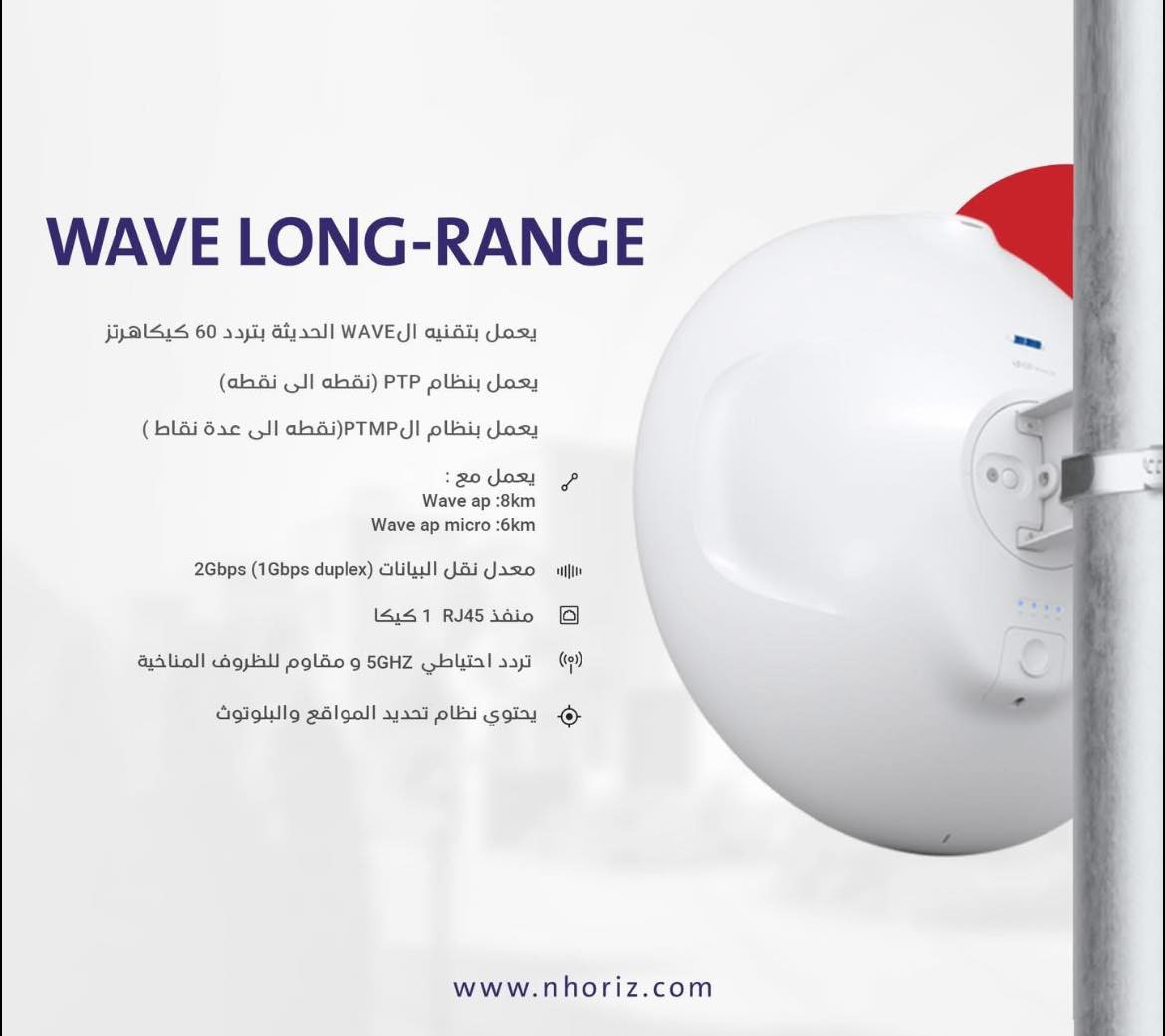 محتاج لنك يأمن 1 كيكا وبمسافه 4 كيلو تردد 60GHZوتردد احتياط 5GHZ واستقرار عالي في الاشاره ماعندك غير الwave lr متوفر بكميات واسعار مدعومه لاصحاب الجمله للاستفسار :***********