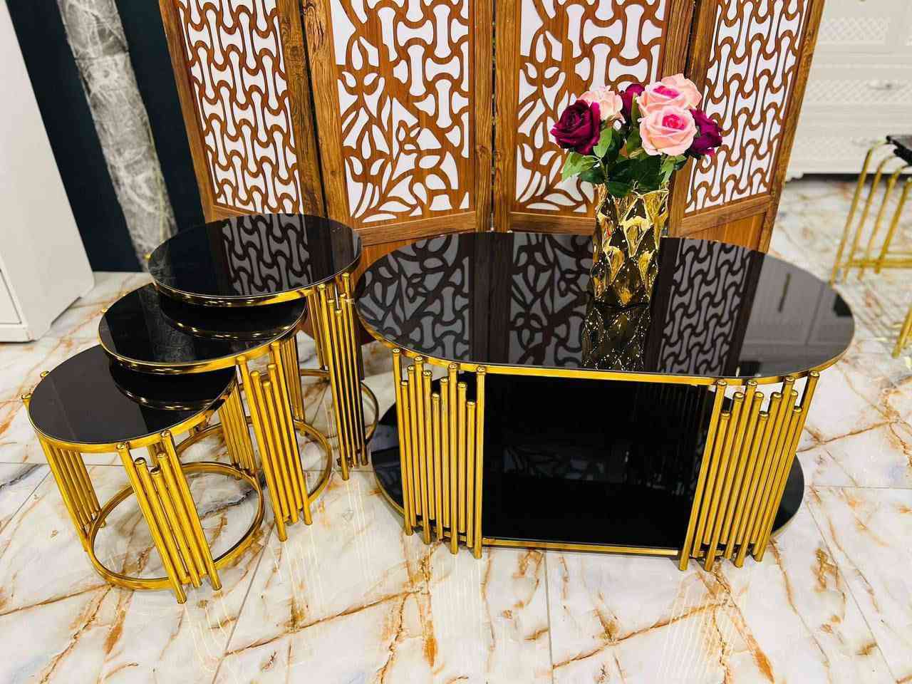 سيت طاولات • طاولات بيضاوية • زجاجي عسلي