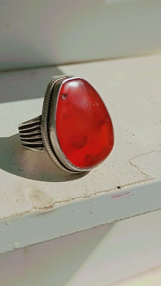 عقيق يماني • أحمر شفاف • صياغة بحرينية ثقيلة