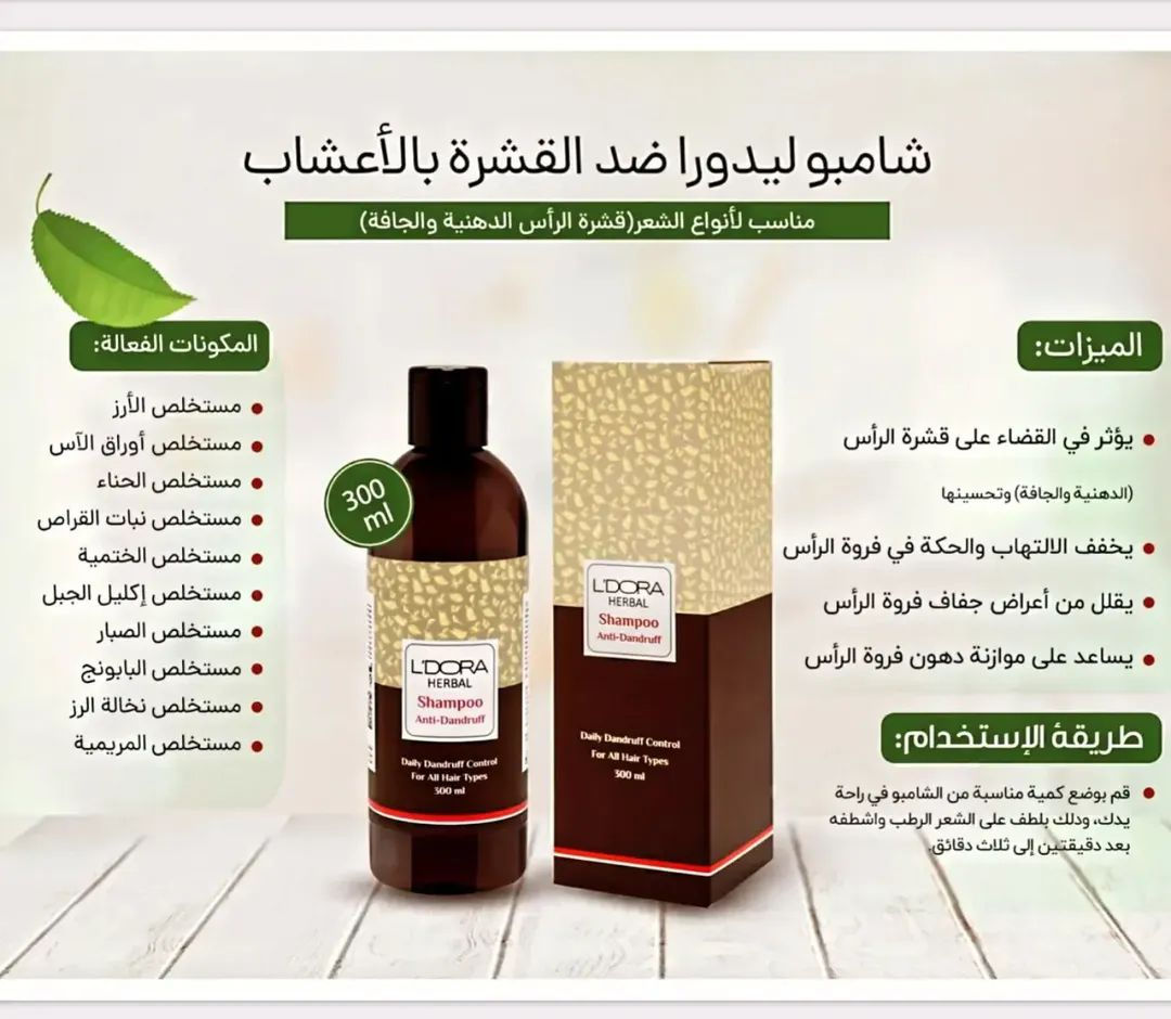 القضاء على القشرة: فعال في إزالة القشرة بنوعيها (الدهنية والجافة) وتحسين حالة فروة الرأس. تهدئة الفروة: يعمل على تخفيف الالتهابات والحكة المصاحبة للقشرة. الترطيب: يقلل من أعراض جفاف فروة الرأس. التوازن: يساعد في موازنة إفراز الدهون الطبيعية في فروة الرأس. المنتج يتوفر لدينا فقط **إذا كنت صاحب هذا الإعلان وتريد حذفه لأي سبب، رجاءا أرسل رسالة إلى الدعم الفني**