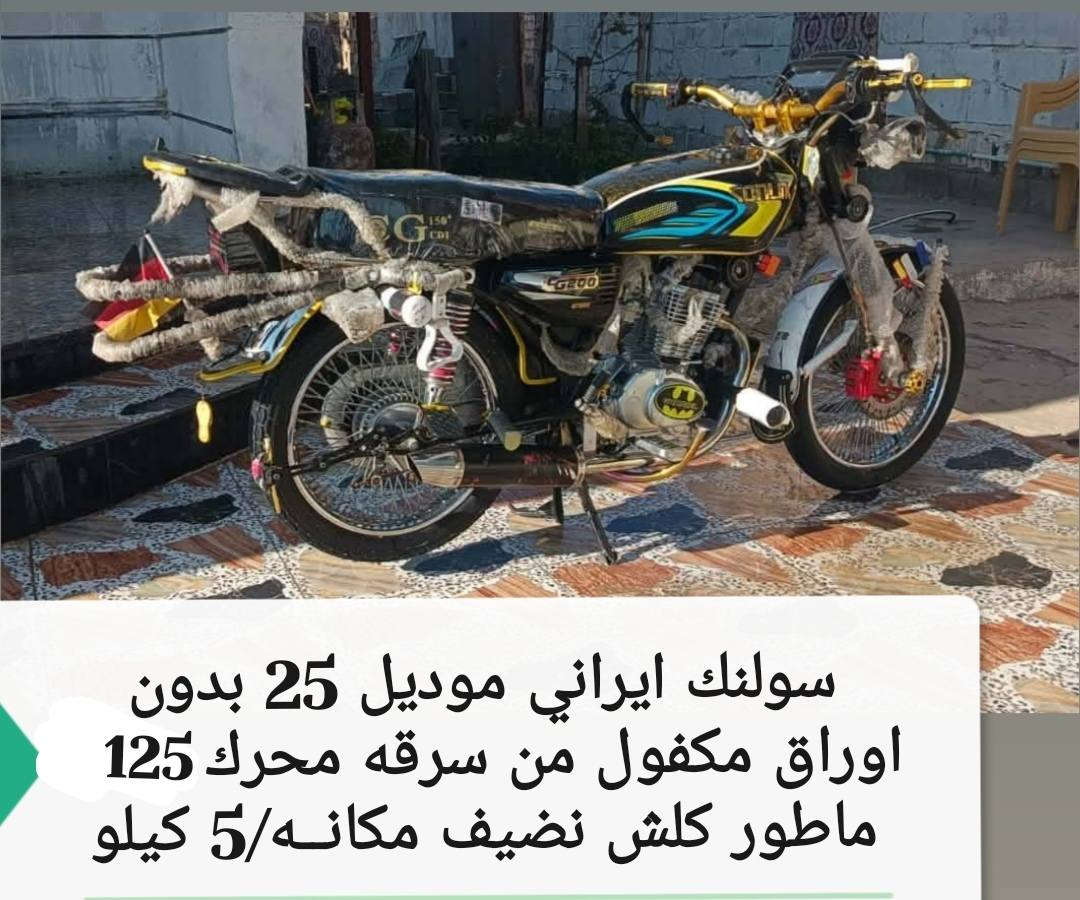 #بيــع_مستعجل سولنك ايراني موديل 25 بدون اوراق مكفول من سرقه محرك 125 ماطور كلش نضيف مكانــه/5 كيلو **إذا كنت صاحب هذا الإعلان وتريد حذفه لأي سبب، رجاءا أرسل رسالة إلى الدعم الفني**