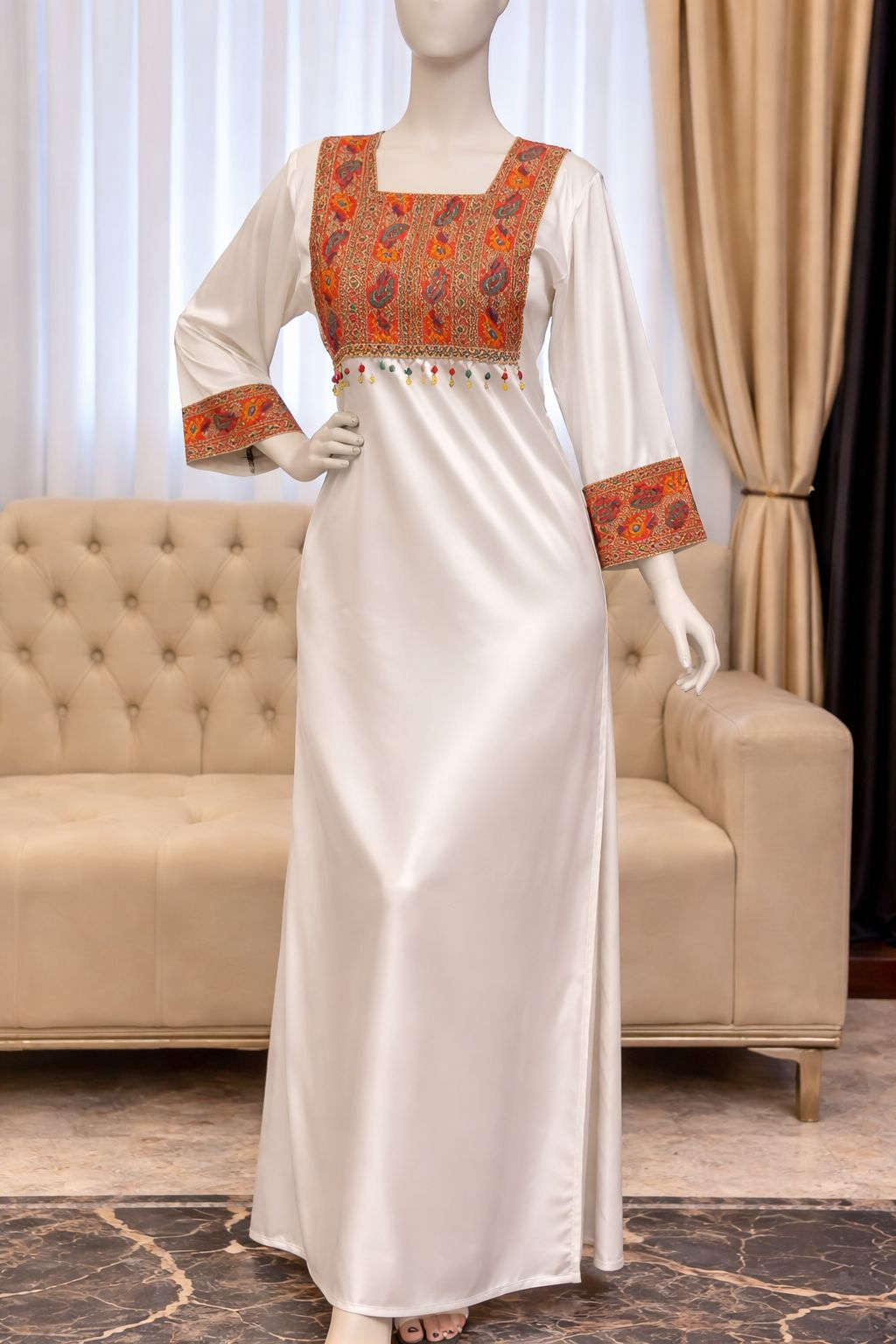 دشداشة مصري • قطن مطرز استراس • فري سايز ٨٥ك