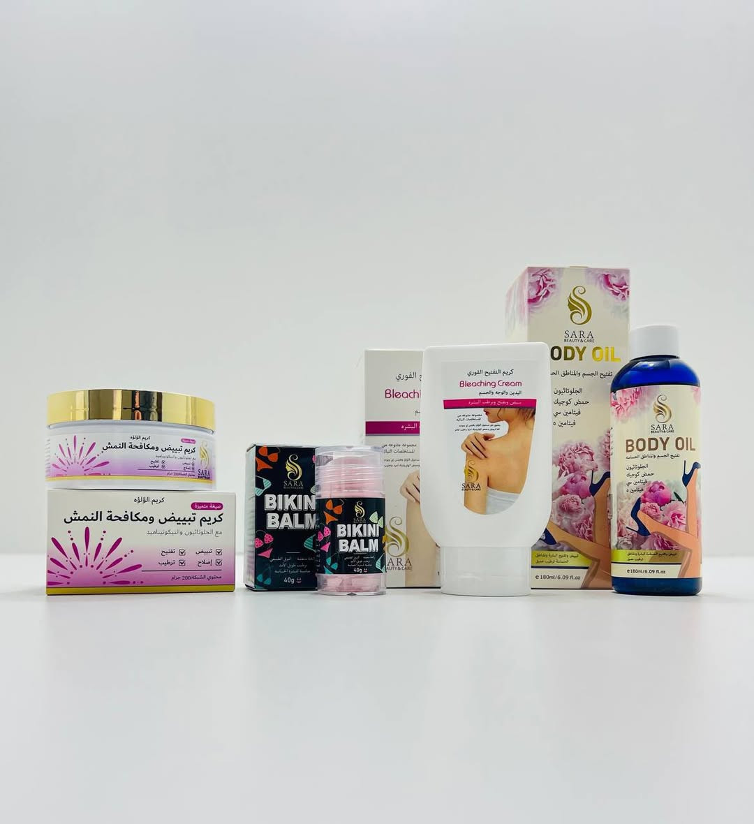 مجموعة العناية الكاملة من Sara Beauty بشرتج وجسمج يصيرون فلتر 🩵⊹𐙚。❄️⋆𖦹. 😭 تتكـون من 4 منتجات : ✨ كريم لؤلؤة التبييض من سارة بيوتي 200g يفتح ويوحد اللون يقلل النمش والبقع، ترطيب ونعومة مناسب لكل أنواع البشرة حتى الحساسة ✨ بلسم تفتيح منطقة البكيني من سارة بيوتي 40g تفتيح فوري + ترطيب عالي يحتوي زبدة الشيا، زيت جوز الهند، جلوتاثيون مخصص للمناطق الحساسة، رائحة حلوة وثبات طويل. ✨ كريم تفتيح فوري من سارة بيوتي 150gللوجه والجسم والركب والأكواع تفتيح من أول استخدام + مع الاستمرار بحليب الماعز، ألفا أربوتين، بودرة اللؤلؤ ✨ زيت الجلوتاثيون + حمض الكوجيك من سارا بيوتي لتفتيح وترطيب المناطق الحساسة يوحد اللون ويقلل التصبغات ينطي نعومة ونضاره **إذا كنت صاحب هذا الإعلان وتريد حذفه لأي سبب، رجاءا أرسل رسالة إلى الدعم الفني**