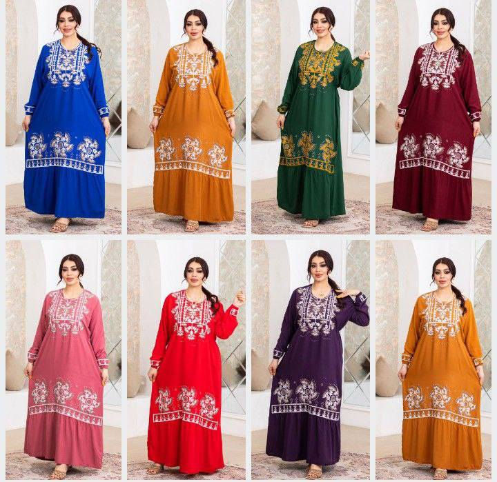 دشداشة نسائية • تطريز وستراس • مقاسات ٢× و ٣×