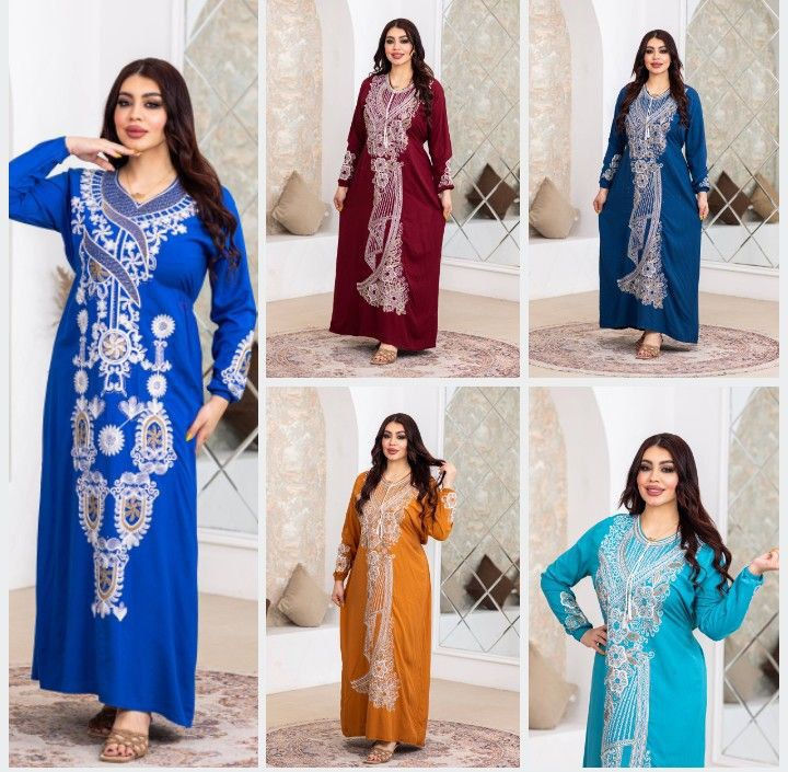 دشداشة نسائية • تطريز وستراس • مقاسات ٢× و ٣×