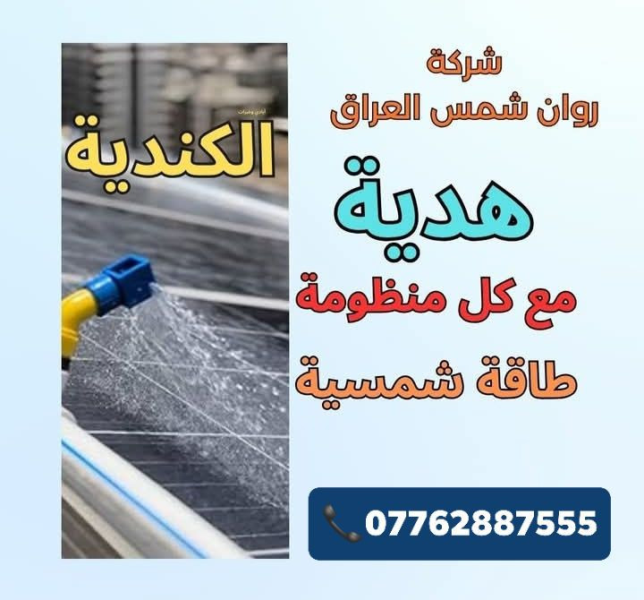 🌞 شركة روان شمس العراق الكندية متخصصين بمنظومات الطاقة الشمسية الحديثة ⚡ ✔️ تشغيل نهاري على طاقة الشمس ✔️ شحن بطاريات تلقائي ✔️ استمرار كهرباء عند انقطاع التيار ✔️ إشراف مهندسين مختصين ✔️ عقد رسمي يضمن حقوق الزبون نوفر استشارة مجانية عبر الهاتف ويا المهندس المختص 📞 للتواصل: ***********