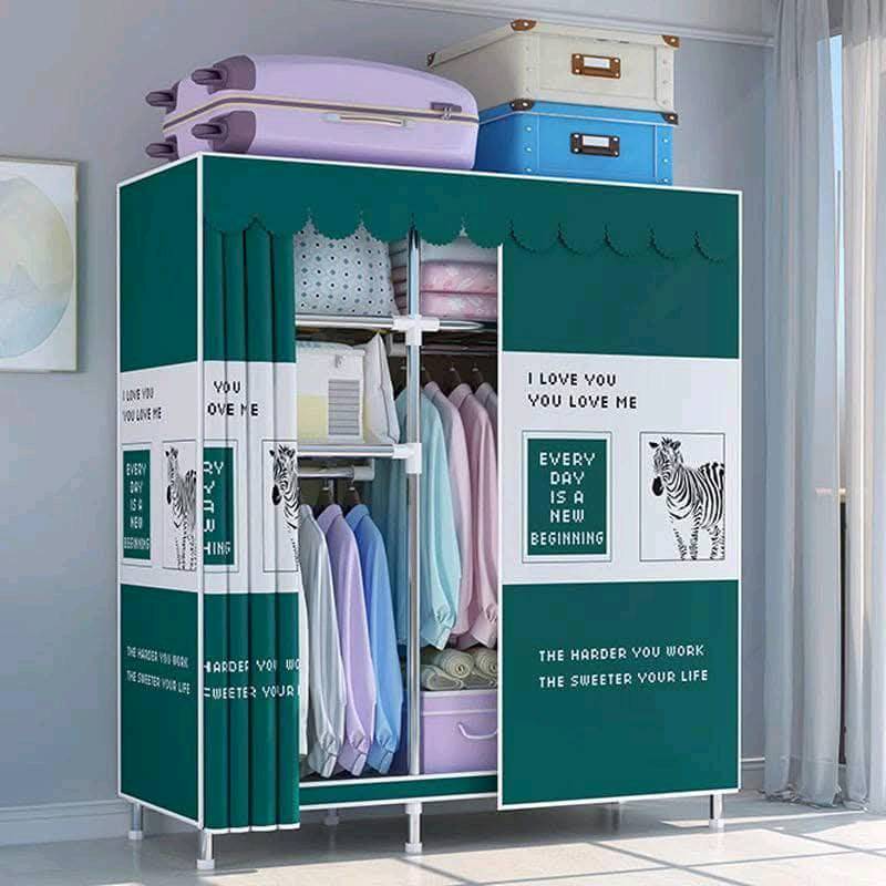 كنتور ملابس حديث مع ستارة جميلة وتطريز مميز. يتميز بتصميم عصري ويحتوي على عدة رفوف لتعليق الملابس من مختلف الأنواع. الهيكل معدني متين ويوفر سعة تخزين كبيرة لتنظيم الملابس والأغراض. هذا الكنتور مثالي لتوفير المساحة والحفاظ على ترتيب الملابس بشكل أنيق.