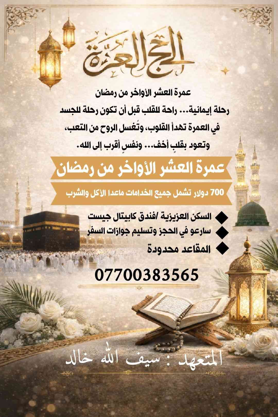 عمرة رمضان • ديار العراق الصويرة • مقاعد محدودة
