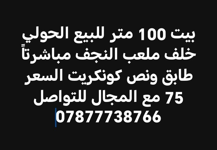 بيت 100 متر للبيع الحولي خلف ملعب النجف مباشرتاً طابق ونص كونكريت السعر 75 مع المجال للتواصل *********** النجف, العراق