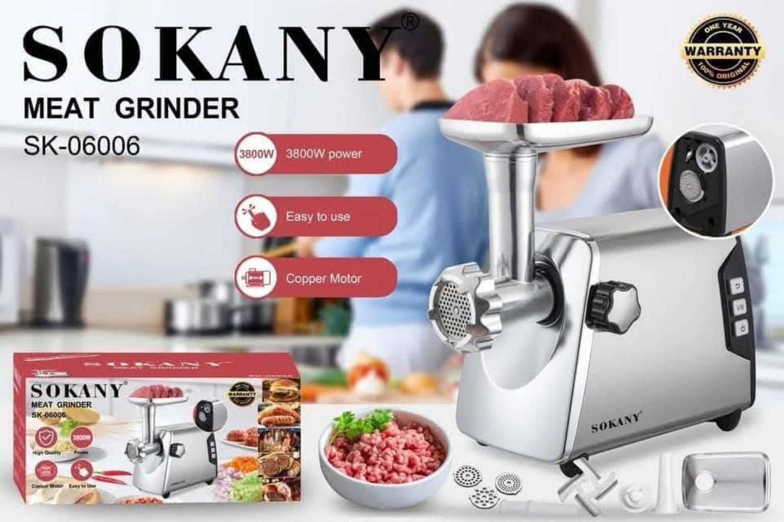 مفرمة لحم قوية من سوكانـي موديل SK-06006 💪 قدرة 3800 واط مع محرك نحاسي لطحن سريع وناعم وسهولة استخدام يومية. متوفرة الآن لدى شركة الهفهاف بأفضل سعر 🔥 **إذا كنت صاحب هذا الإعلان وتريد حذفه لأي سبب، رجاءا أرسل رسالة إلى الدعم الفني**