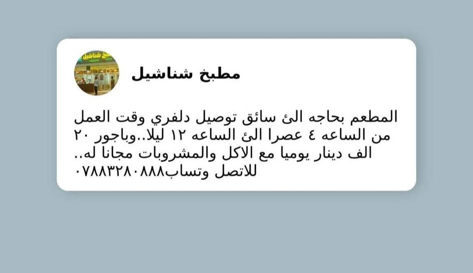 المطعم بحاجة لعامل توصيل الاتصال على الواتساب : ***********