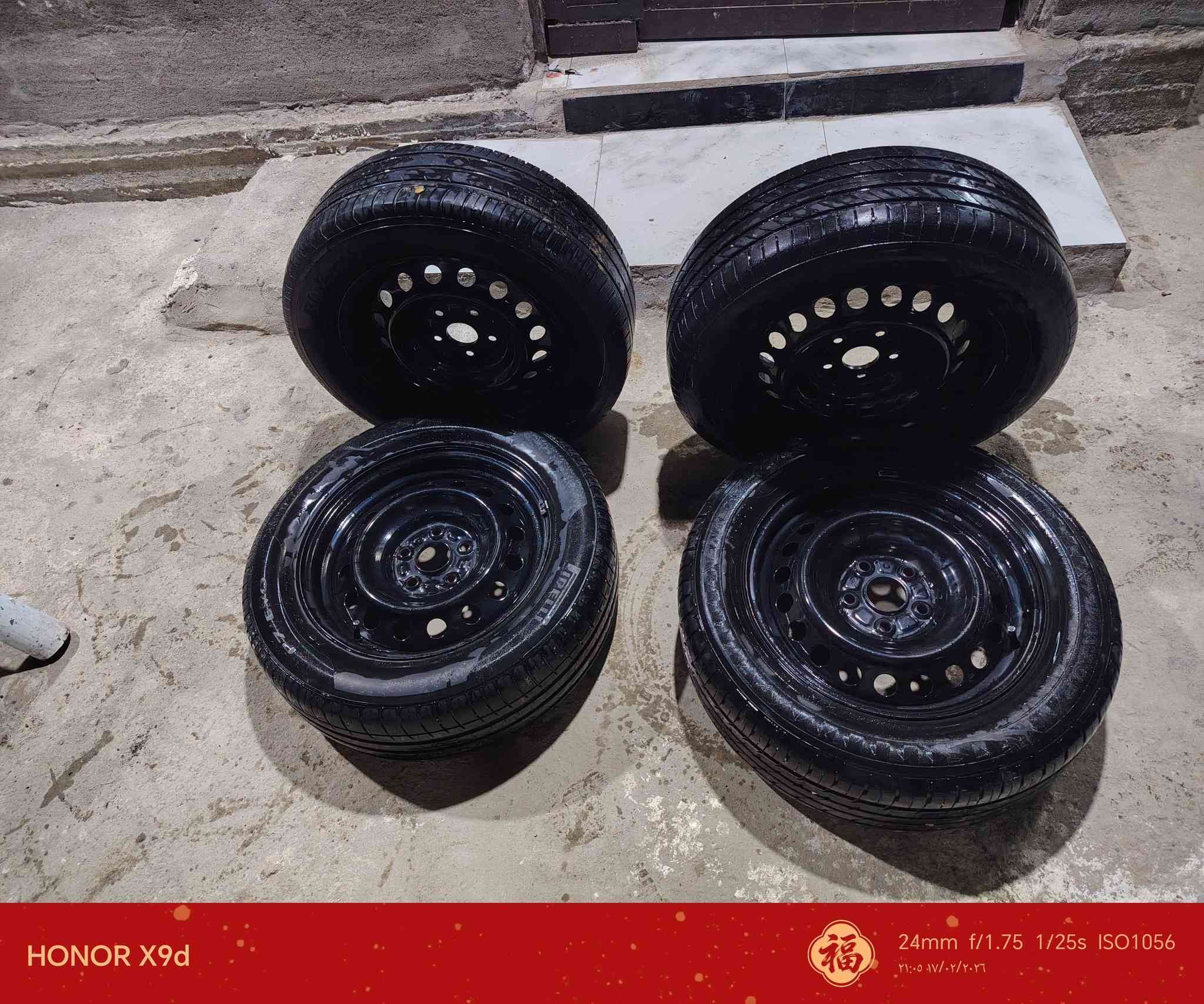 طقم جنط • قياس ١٤ • إطارات شبه جديدة