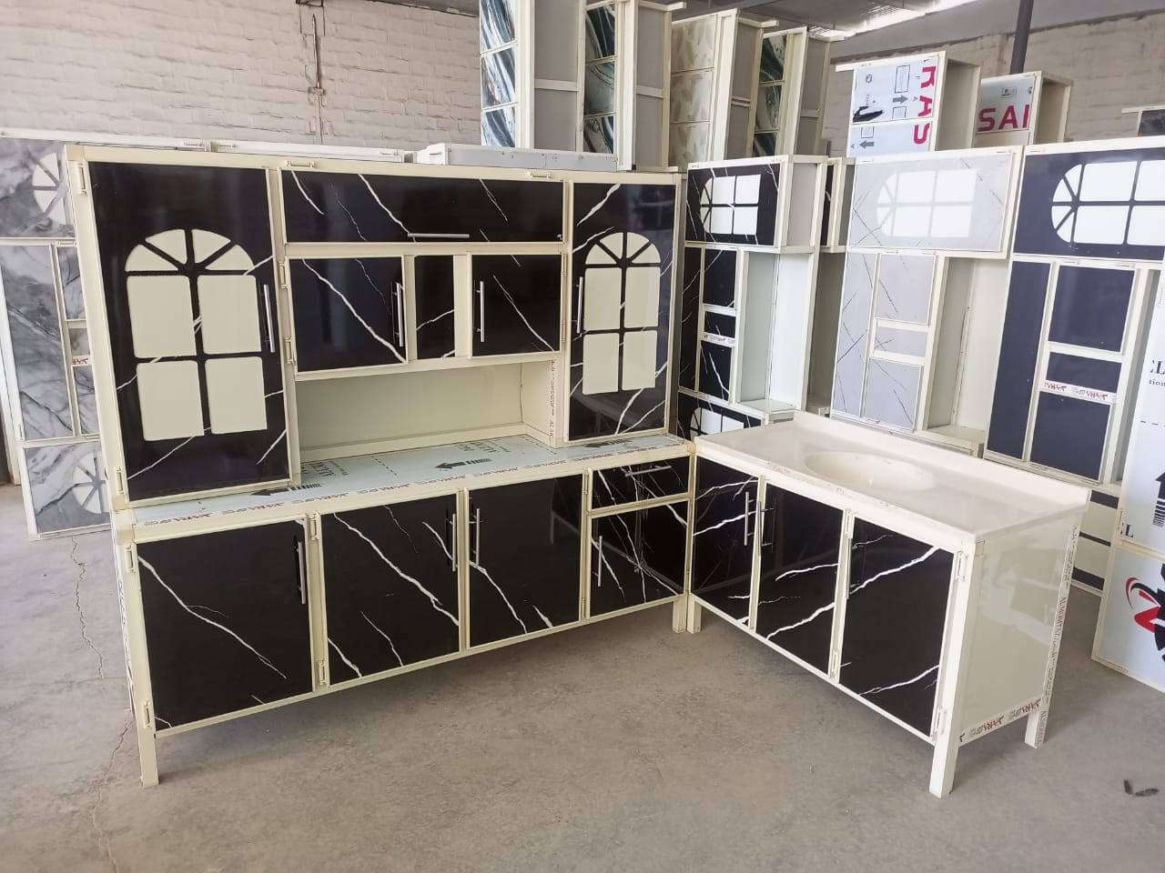 كاونتر المنيوم صيني • ٢م ملحق ٢م • سنك مرمر ١م٢٠سم