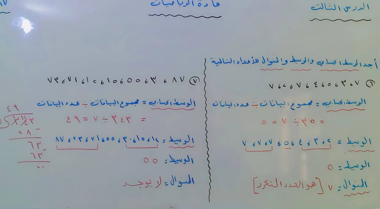 الرياضيات مو صعبة… إذا انشرحت صح ✅ من درس اليوم: الوسط الحسابي – الوسيط – المنوال بطريقة خطوة بخطوة حتى تثبت المعلومة. تحب ابنك/بنتك يصير قوي بالرياضيات؟ احجز مكانه ويانا 📩 وحتى نسهل الموضوع عليكم سوينالكم عرض على الرياضيات للمراحل الابتدائية سجّل ويا صديقك وأخذوا خصم أنتو الاثنين 🤝📘 هالعرض راح يستمر لحد نهاية الشهر الحالي 🚏 العنوان: أبو غرق – حي السلام – شارع الملاعب ما بين سنتر أنوار القمر و كافتريا أبو رضا 📞 *********** | 💬 *********** 📸 Instagram: nipp.25 📢 Telegram: https://t.me/nipp204 🚨 سارع بالتسجيل… المقاعد محدودة! #نيبور_لدورات_التقوية_حيث_ننمو_معاً