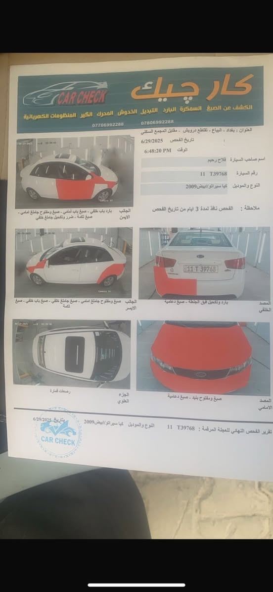 سيراتو 2009 صدر خلفي امامي جديد تبريد ثلج 5 ويل كب تخم تاير فتحه فول موصفات من عدى بصمه مكينه1600 لاتنقيص ولابخار سعر 90 وبيه مجال مكان الغزاليه 0772 728 8413