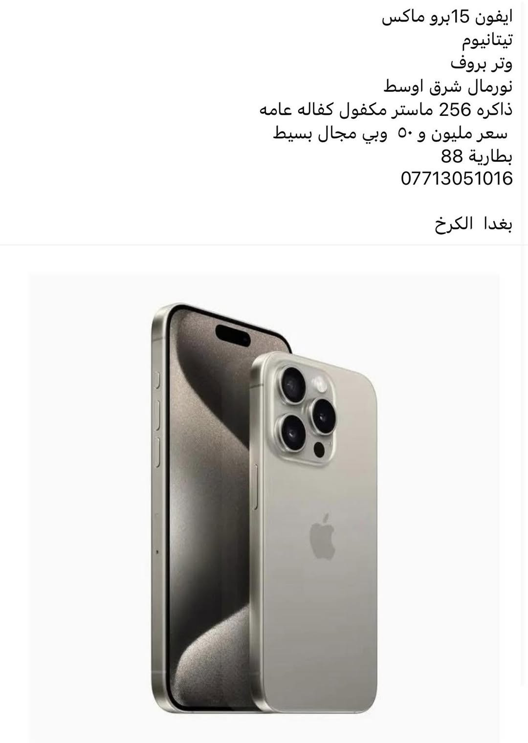 آيفون ١٥ برو ماكس • ٢٥٥ • بطارية ١٠٠