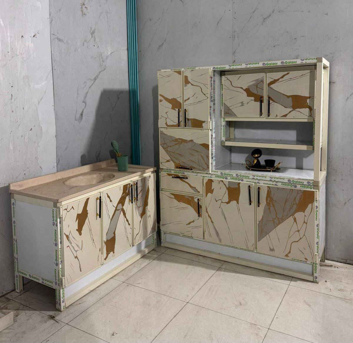 كاونتر المنيوم صيني • ٢م ملحق ٢م • سنك مرمر ١م٢٠سم