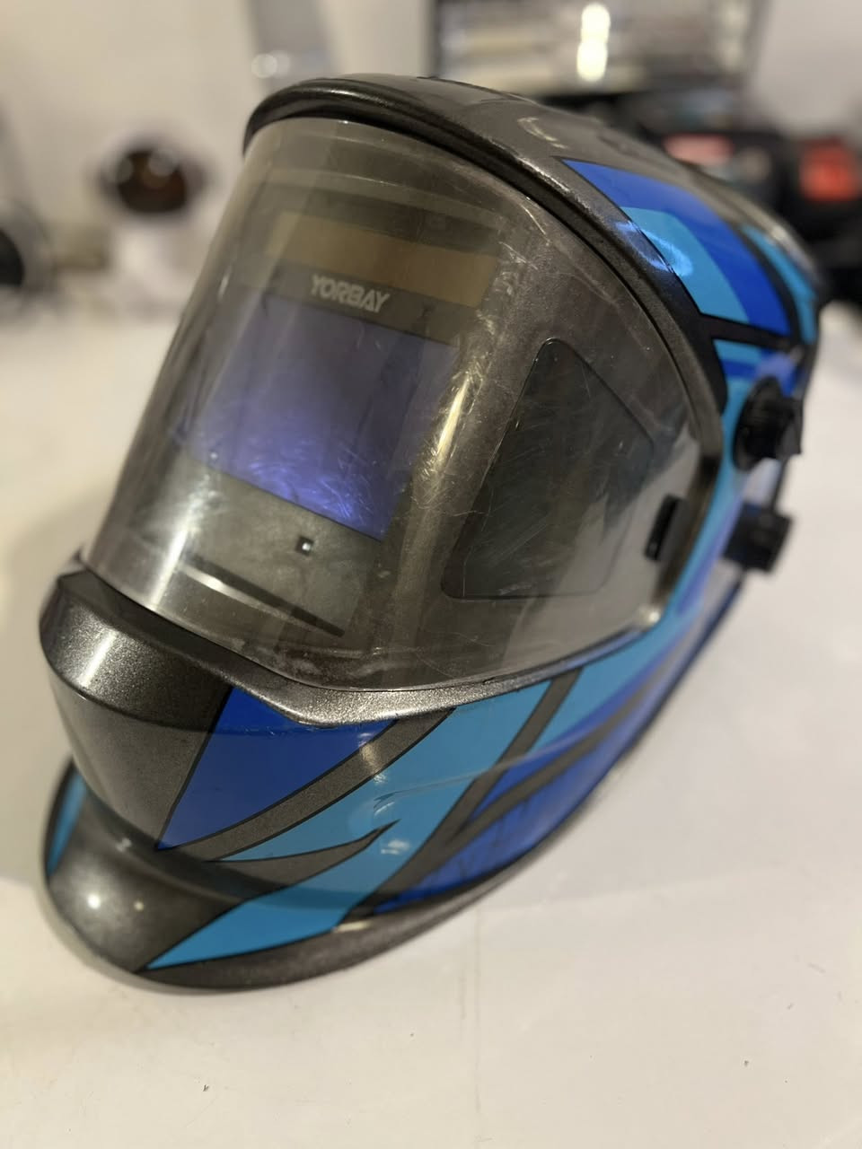 خوذة لحام ذات تعتيم تلقائي من ماركة يورباي (Yorbay). نوع المنتج: قناع أو خوذة لحام تعمل بالطاقة الشمسية. التصميم: تتميز بتصميم رسومي ولون أزرق، وتتضمن نوافذ جانبية لرؤية أوسع. المميزات: وظيفة طحن (Grinding)، ونظام تعتيم تلقائي لحماية العين من أشعة اللحام الضارة. الملحقات: تأتي عادةً مع قطع غيار للزجاج الواقي. اليريده ينطينه سعر وبلعافيه **إذا كنت صاحب هذا الإعلان وتريد حذفه لأي سبب، رجاءا أرسل رسالة إلى الدعم الفني**