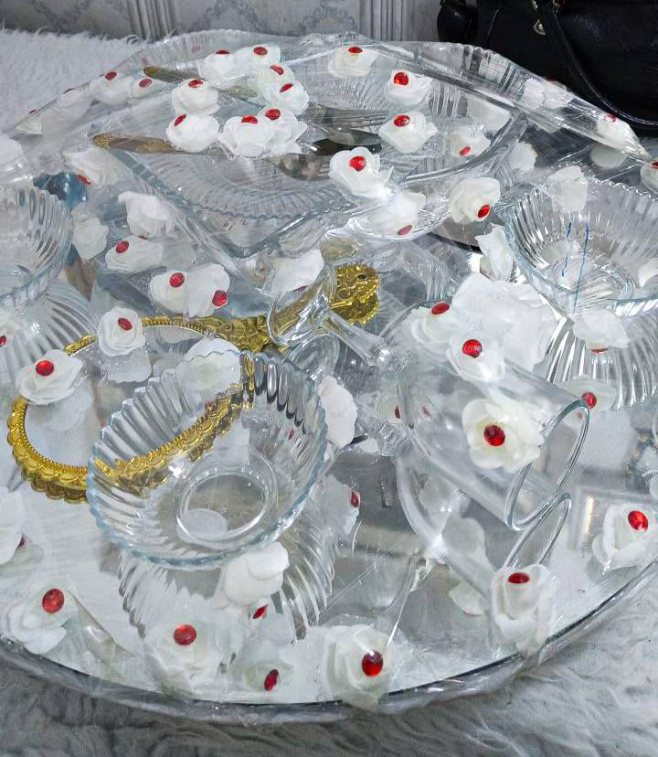 صينية عقد مستخدمة للبيع متكونة من صينية مزينة بالورد و مبطنة بمراية مراية ذهبية يدوية صحون + اماعين وشوكات سجاجين كيك خواشيك وشوكات اشتريتهم بـ ٤٥ الف استخدمتهم مرا وحدة بس واريد ابيعهم بـَ ٢٥ ألف وبيها مجال بسيط ... **إذا كنت صاحب هذا الإعلان وتريد حذفه لأي سبب، رجاءا أرسل رسالة إلى الدعم الفني**
