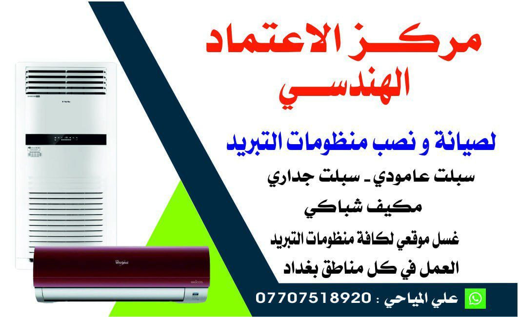 ⚒️مركز الإعتماد الهندسي ⚒️⚒️ نصب سبالت 🛠️ صيانة موقعية 🔩 غسل موقعي 🚿 كافة أنواع أجهزة التبريد موقعياً وبكادر متخصص 👷🏻♂️ عندك صيانة أو تنظيف؟ لا تحتار، اتصل نجيك لباب بيتك. ما عليك سوى الاتصال. خدماتنا: صيانة - شحن غاز - نصب - غسل موقعي الأرقام *********** علي المياحي ☎️ #علمآ العمل بكافة مناطق بغداد