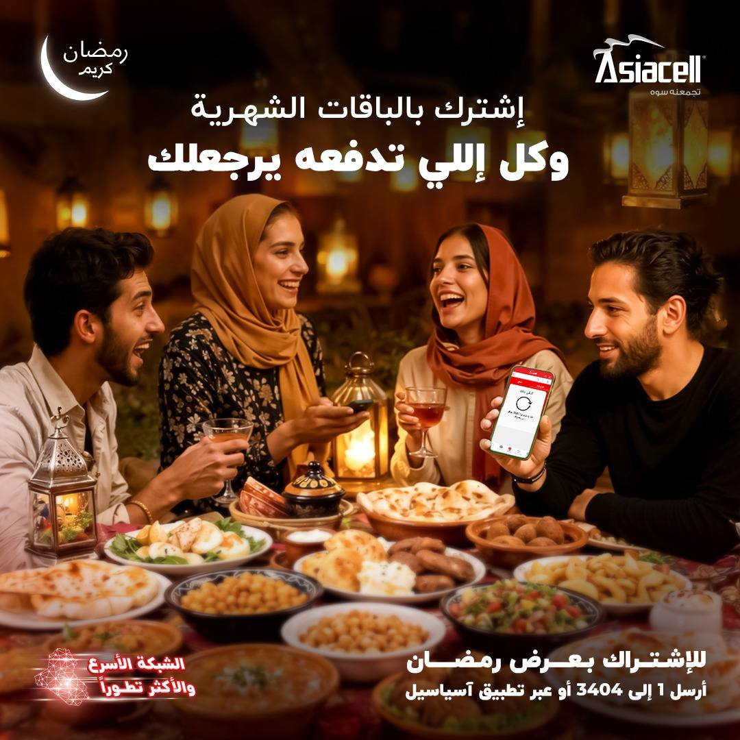 #عرض_مايتفوت عرض رمضاني مميز من آسياسيل 🌙📱 اشترك بالباقات الشهرية من RED وارجع استلم كامل مبلغ الباقة! إنترنت أكثر، مكالمات أكثر، وميزات تناسب استخدامك طوال الشهر. لتواصل على الوتس او الاتصال *********** مكتبة الجزيرة /مجاور جسر الجواعنه